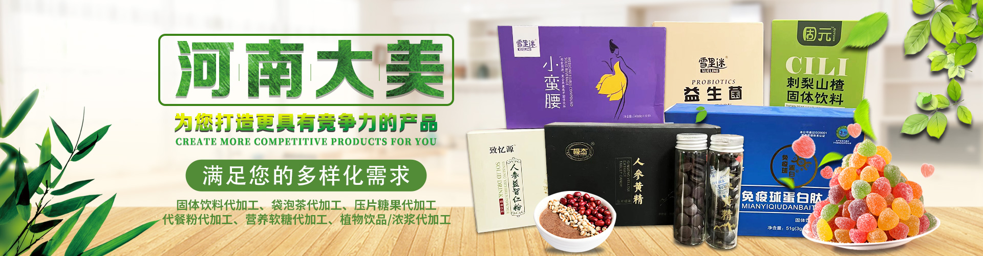 河南大美生物科技股份有限公司是從事顆粒劑、(固體飲料類),壓片糖果代加工等研發(fā)和銷售為一體的生產(chǎn)企業(yè)。公司依托自身的高科技研發(fā)隊(duì)伍和營銷團(tuán)隊(duì),為國內(nèi)外客戶提供營養(yǎng)食品各劑型和規(guī)格的研制、生產(chǎn)、配方設(shè)計、批文申報等服務(wù),并為客戶提供多種形式的流通渠道及產(chǎn)品銷售服務(wù)工作。 您的要求就是我們的使命!我們的宗旨是與客戶“合作共贏,攜手向前”,共同創(chuàng)造事業(yè)新的輝煌!